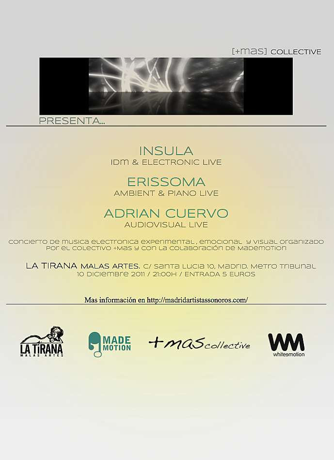 Llegar es el nuevo y segundo trabajo de Insula, esta vez para el netlabel escala. Detrás de este proyecto se encuentra Leonardo Mirabal, venezolano afincado en Madrid desde hace años y parte activa del colectivo +MAS (Madrid Artistas Sonoros). Su música nos lleva a lugares pequeños e íntimos, con mensajes cargados de emotividad y recuerdo de lo vivido y dejado atrás. Su producción, mediante el uso de sintes analógicos combinados con las más modernas tecnologías, dan como resultado un trabajo que huye de épocas y estilos pero muy influenciado por la música ambiental más clásica. Un viaje sonoro que intenta evocar imágenes, paisajes y situaciones en el oyente para, de esta forma, sumergirnos en una visualización emotiva del recuerdo de lo que fue, de lo que pudo haber sido en un momento onírico y cambiante.